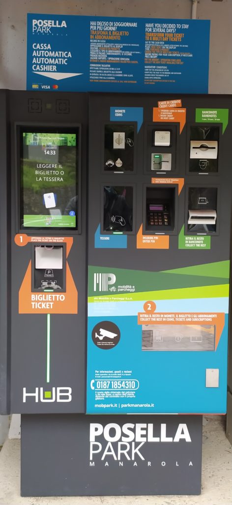 Pagamento tramite Parcometro, con monete e Carte di debito/credito